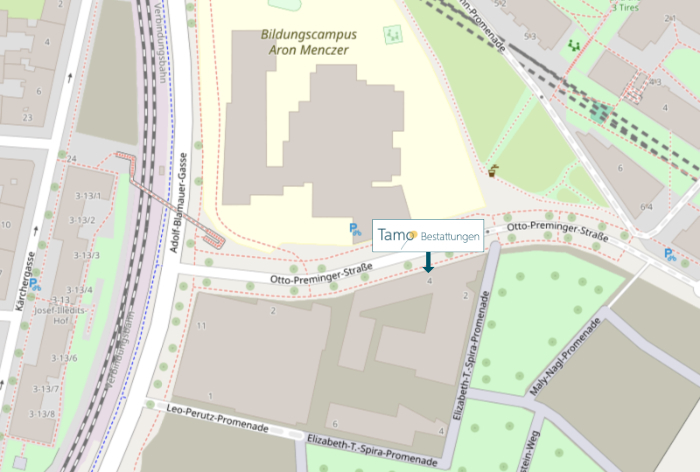 Unser Eingang ist barrierefrei und befindet sich auf der Otto-Preminger-Straße.