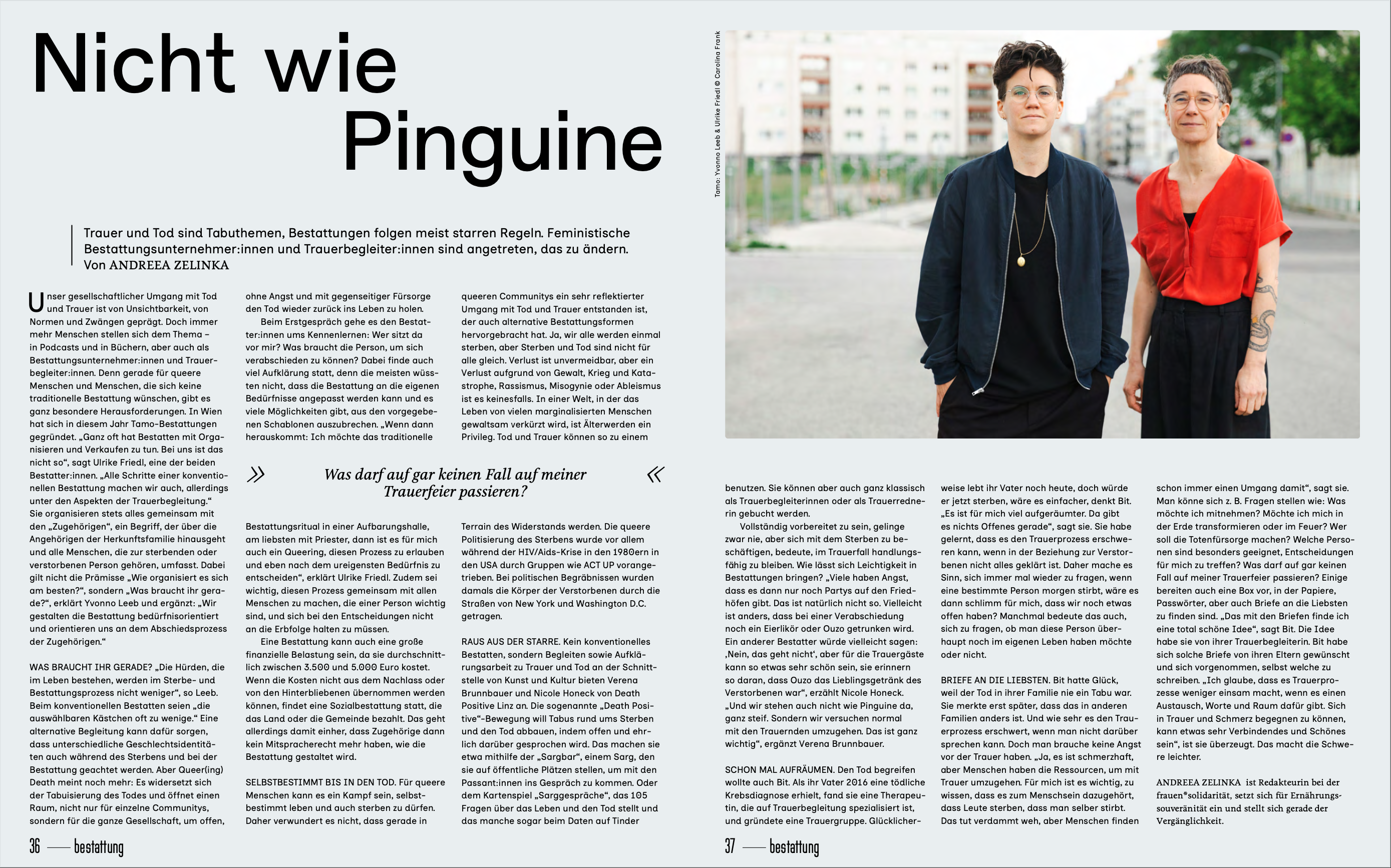 3. Dezember 2024 an.schläge Trauer und Tod sind Tabuthemen, Bestattungenfolgen meist starren Regeln. Feministische Bestatter:innen sind angetreten, um das zu ändern.